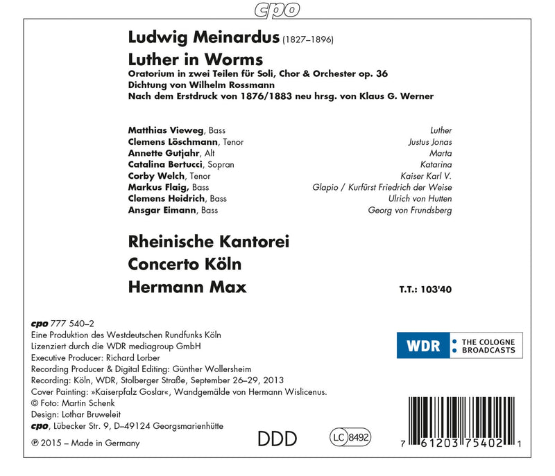 CPOMeinardus: Luther In Worms, Op. 36 / Rheinische Kantorei, Concerto Cologne