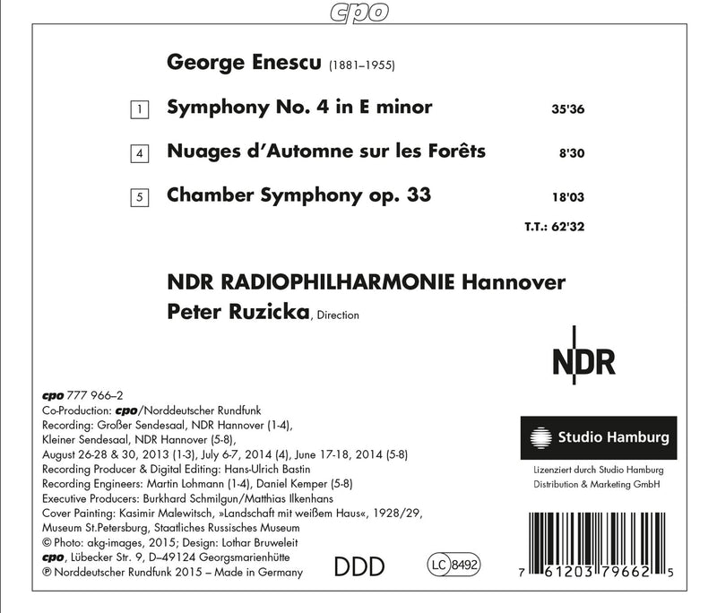 CPOGeorge Enescu: Symphony 4; Chamber Symphony; Nuages D'automne Sur Les Forets