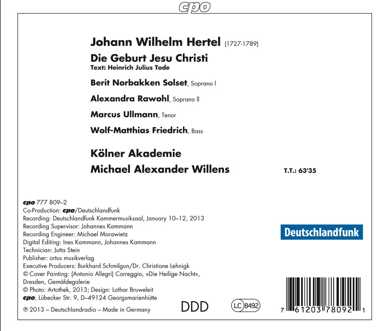 The Koelner Akademie under the conductor Michael Alexander Willens presents a compelling interpretation of the Christmas Oratorio by Johann Wilhelm Hertel. The...