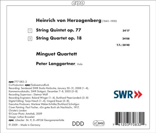 HERZOGENBERG String Quartet, op. 18. String Quintet, op. 77 1 • Minguet Qrt; 1 Peter Langgartner (va) • CPO 777 083-2 (58:40)...