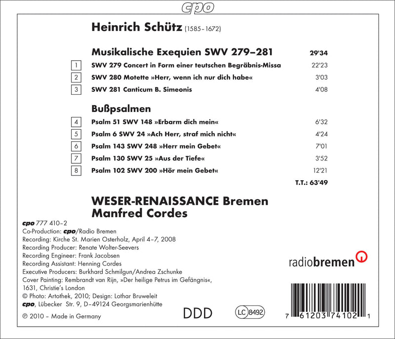 CPOHeinrich Schutz: Musikalische Exequien; Bußpsalmen Cordes