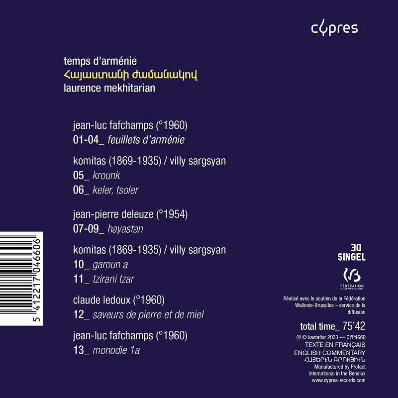 This Temps d’Arménie is the musical result of close collaborations initiated by the pianist Laurence Mekhitarian with the three Belgian composers Jean-Pierre...