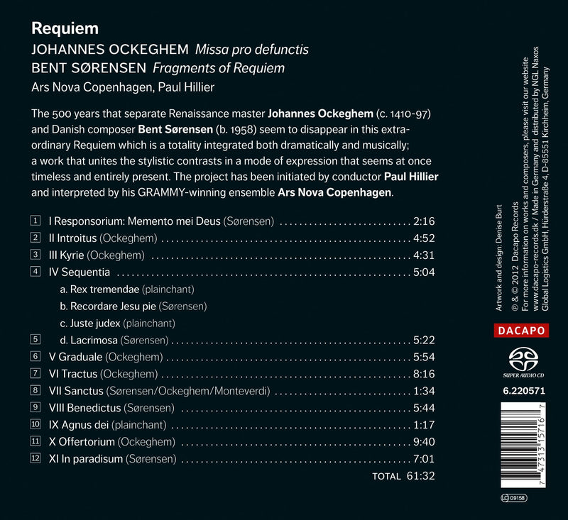 Dacapo ClassicalSorensen, Ockeghem: Requiem / Hillier, Ars Nova Copenhagen