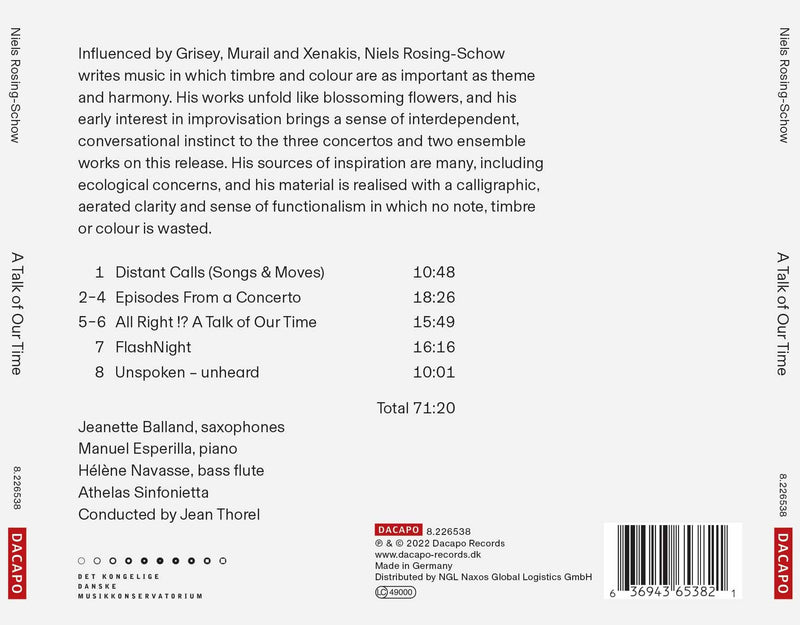 Dacapo ClassicalRosing-Schow: A Talk of Our Time / Balland, Esperilla, Navasse, Thorel, Athelas Sinfonietta