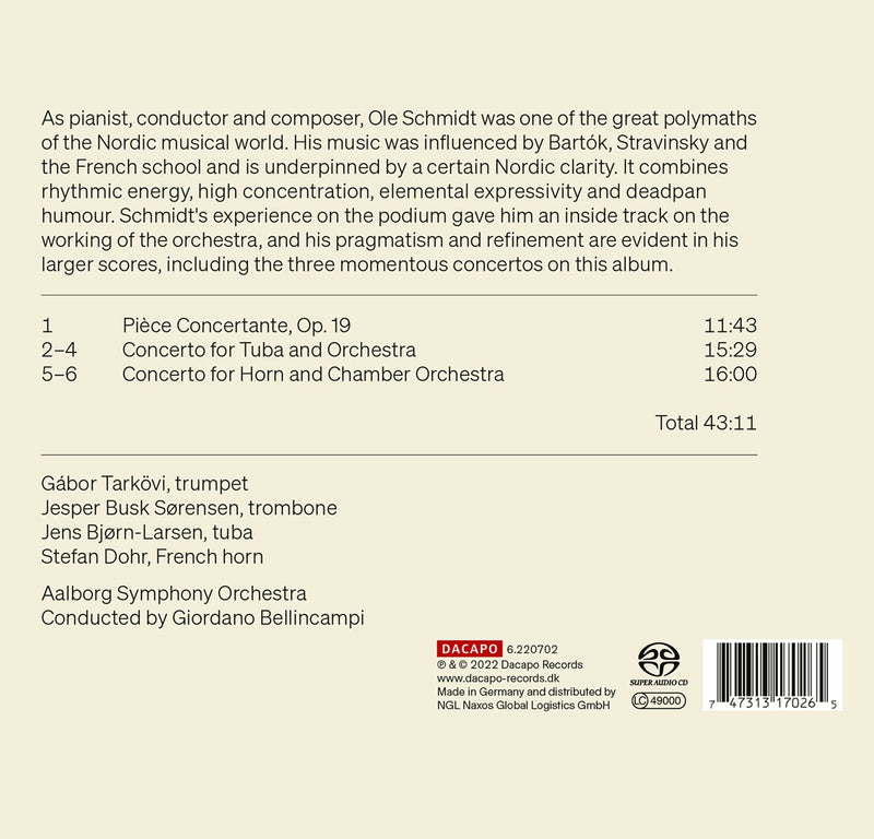 Dacapo ClassicalSchmidt: Brass Concertos / Tarkovi, Dohr, Bjørn-Larsen, Sorensen, Bellincampi, Aalborg Symphony Orchestra