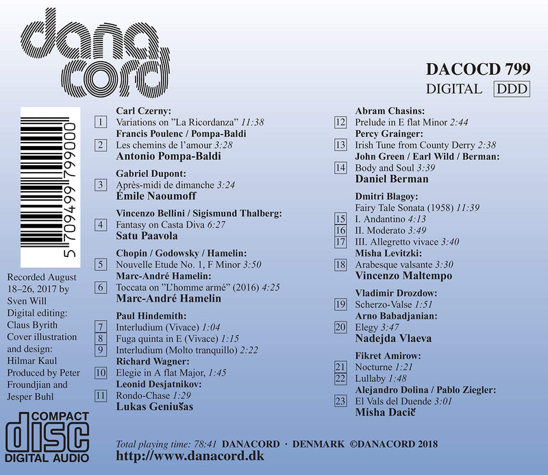 Includes work(s) for piano by Franz Liszt, Frédéric Chopin, various composers. Soloists: Johanne Stockmarr, France Ellegard, Galina Werschenska.