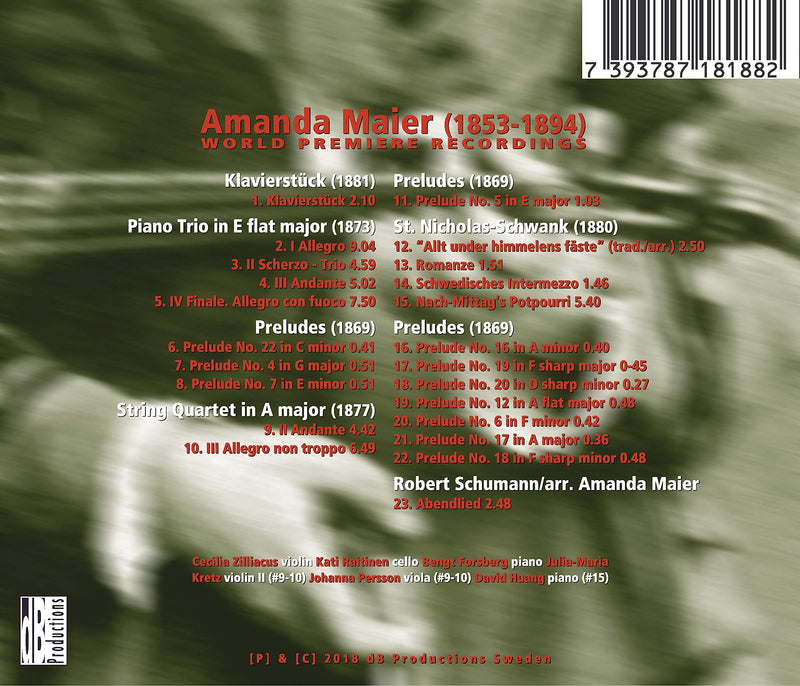 This new release features even more world premiere recordings of the music of Amanda Maier (1853-1894). Amanda Maier was a Swedish-German composer,...