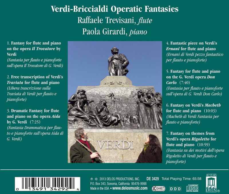 Delos presents world premiere recordings of beautifully crafted fantasies for flute on famous Verdi melodies from Italy's preeminent Romantic-era flute virtuoso, Raffaele...