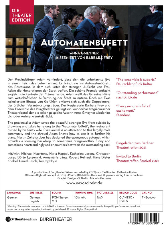 Die TheatereditionGmeyner: Automat / Maertens, Happel, Lorenz, Luser, BurgtheaterPlease note: this is a recording of spoken theatre, not an opera or musical. Anna Gmeyner's play "Automat" dates from 1932 and...
