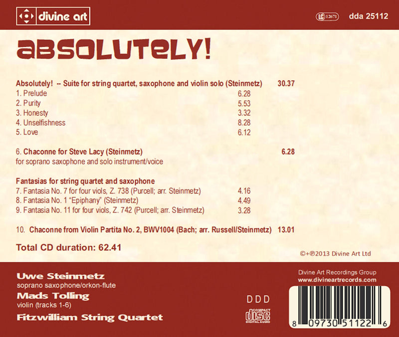 This album features one of the top names in European modern jazz, sax player Uwe Steinmetz, in a program of his own...