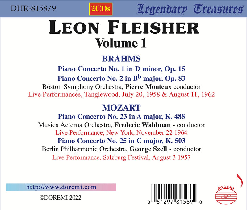 DoremiBrahms, Mozart: Legendary Treasures - Leon Fleisher Live, Vol. 1 / Fleisher, Monteux, Szell, Waldman, Cleveland Orchestra, Boston Symphony Orchestra, MusicaAeterna