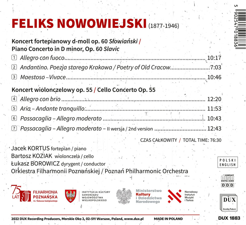 DUXNowowiejski: Piano & Cello Concertos / Kortus, Koziak, Borowicz, Poznań PO