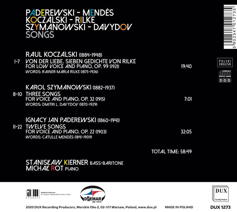 On SaleDUXPaderewski - Koczalski - Szymanowski: Songs / Stanislaw Kierner, Michal Rot