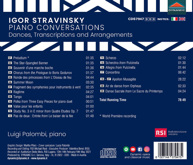 DynamicStravinsky: Piano Conversations - Dances, Transcriptions, Arrangements / Palombi