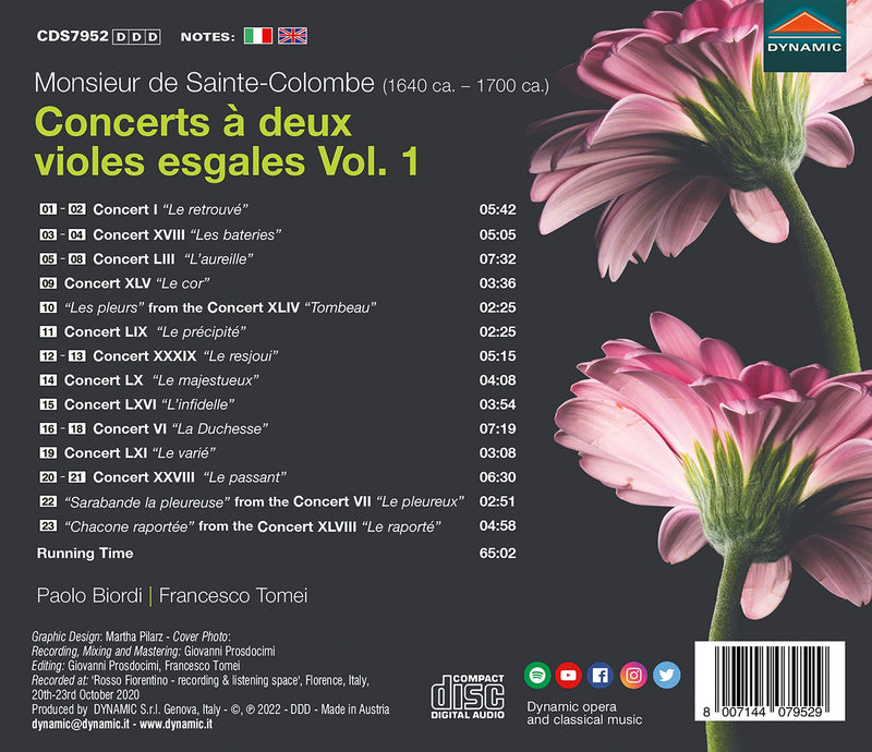 DynamicSainte-Colombe: Concerts for Two Equal Violas da Gamba vol. 1 / Biordi, Tomei