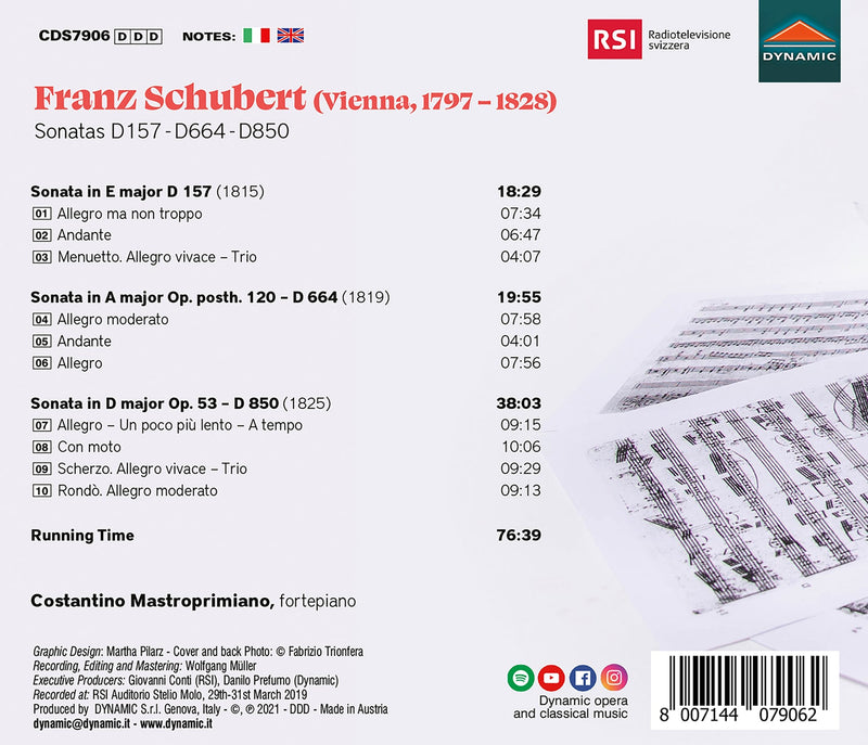 DynamicSchubert: Sonatas D157, D664, D850 / Mastroprimiano