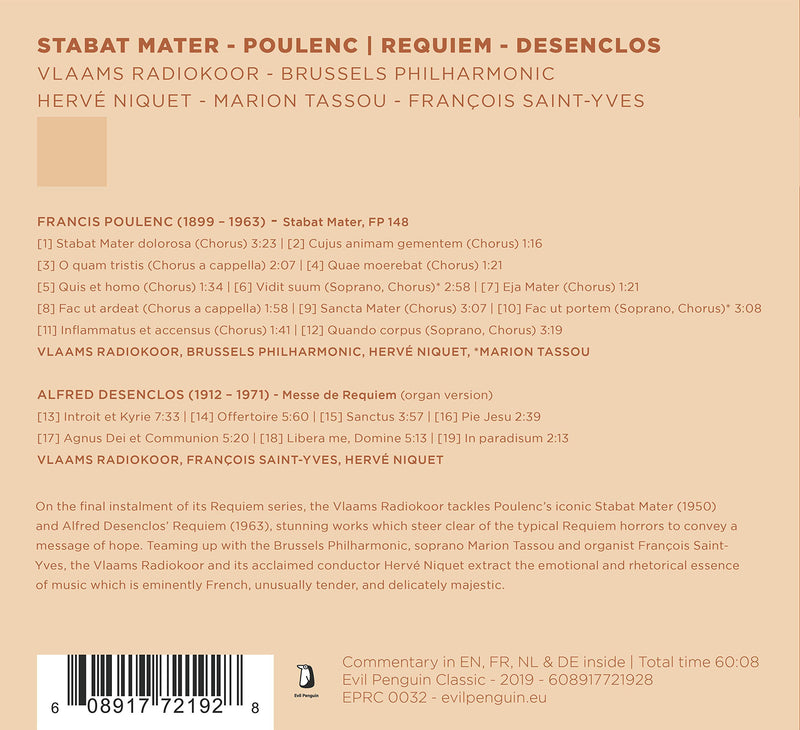 On SaleEvil PenguinSTABAT MATER REQUIEMOn the final installment of it's Requiem series, the Flemish Radio Choir tackles Poulenc's iconic Stabat Mater (1950) and Alfred Desenclos' Requiem...