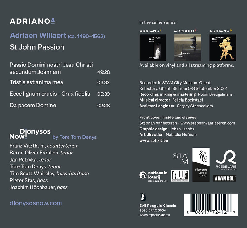 Dionysos Now! performing Adriaen Willaert (1490-1562) - finally on CD! After three releases exclusively on LP, the group founded by tenor Tore...