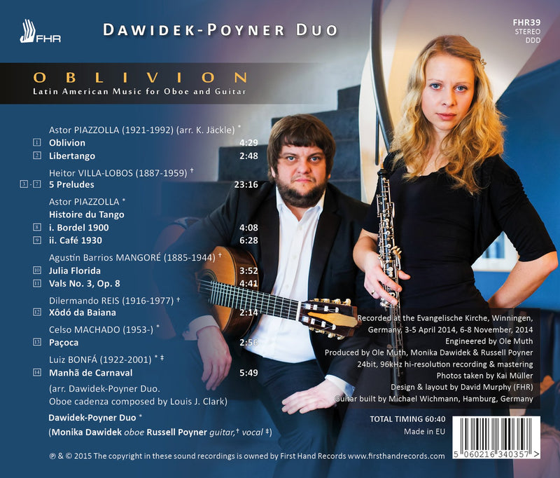 First Hand RecordsOblivion: Latin American Music for Oboe & GuitarSince their first concert together in 2011, Polish oboist Monika Dawidek and English guitarist Russell Poyner have captivated audiences with their energy,...