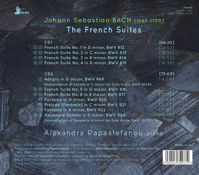 First Hand RecordsJ.S. Bach: The French SuitesAnother outstanding performance/recording of J.S. Bach by Papastefanou, this her second album for FHR, in another classic set of keyboard works by...