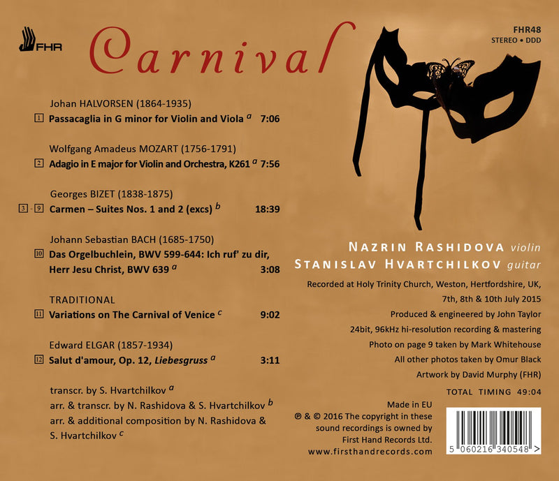 On SaleFirst Hand RecordsCarnivalThe combination of violin and guitar is not as uncommon today as it used to be, partly due to the appeal of...