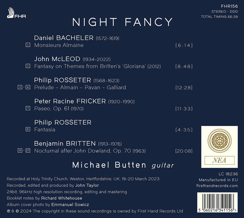 Night Fancy is Michael Butten’s second release on FHR, his previous being the critically acclaimed recording of works by John Dowland [FHR84]....