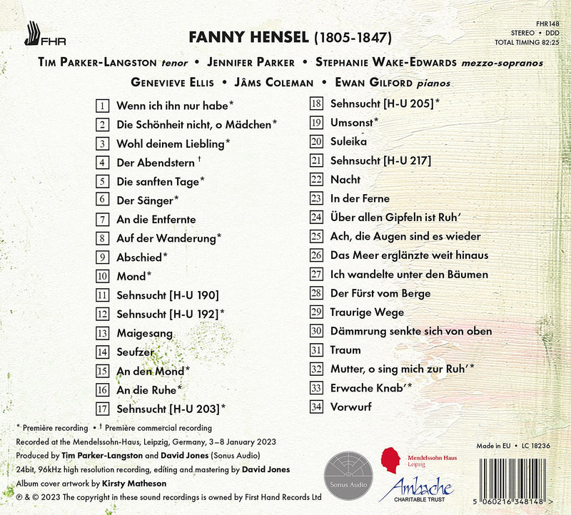 First Hand RecordsMendelssohn-Hensel: Lieder / Parker-Langston, Parker, Wake-Edwards et al.