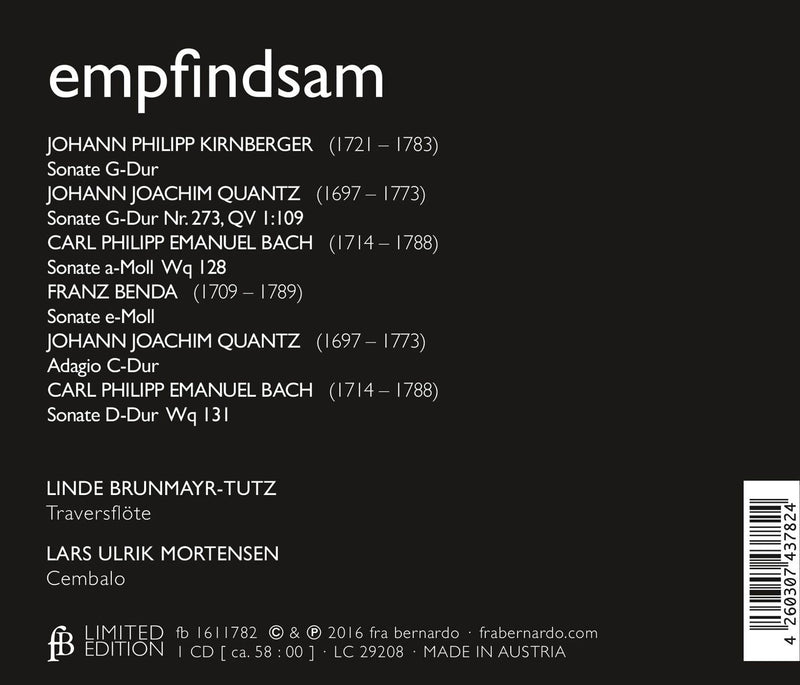 Fra BernardoEmpfindsamAfter their outstanding recording of Bach's flute sonatas, Linde Brunmayr-Tutz and Lars Ulrik Mortensen are working together again. This time they took...