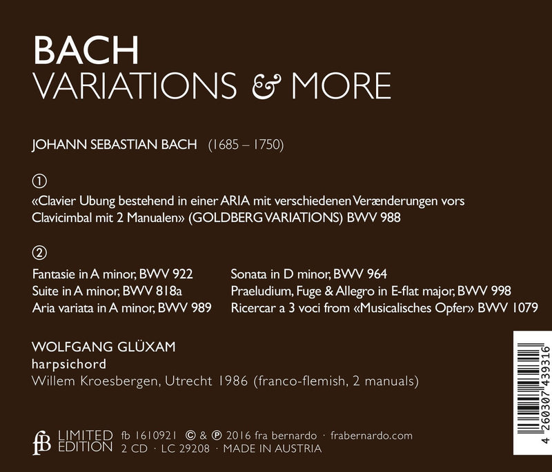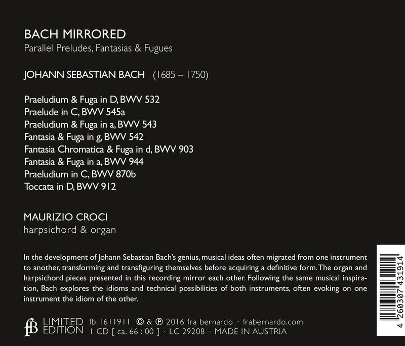 Fra BernardoBach: Variations & MoreThis CD of the Italian harpsichordist and organist Maurizio Croci is dedicated to keys works of Bach, which were designed for both...
