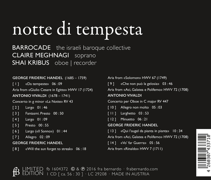 Fra BernardoHandel & Vivaldi: Notte di tempestaVirtuosity was as intricate issue in the late Baroque period. On one hand, the public attending the concert demanded to be overwhelmed...
