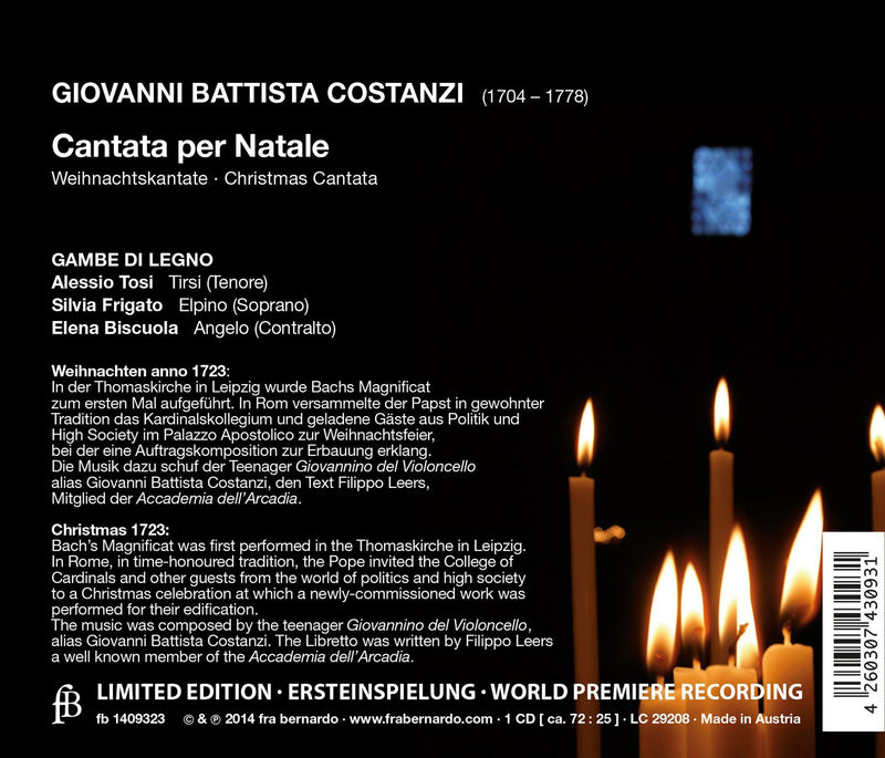 Fra BernardoBach: Cello SuitesAfter his studies at the Conservatorio C. Pollini in Padua, Francesco Galligioni specialized in playing the baroque cello and the viola da...