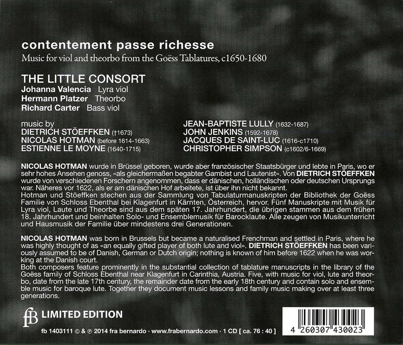Fra BernardoContentement Passe Richesse: Music For Viol And Theorbo From The Goess Tablatures