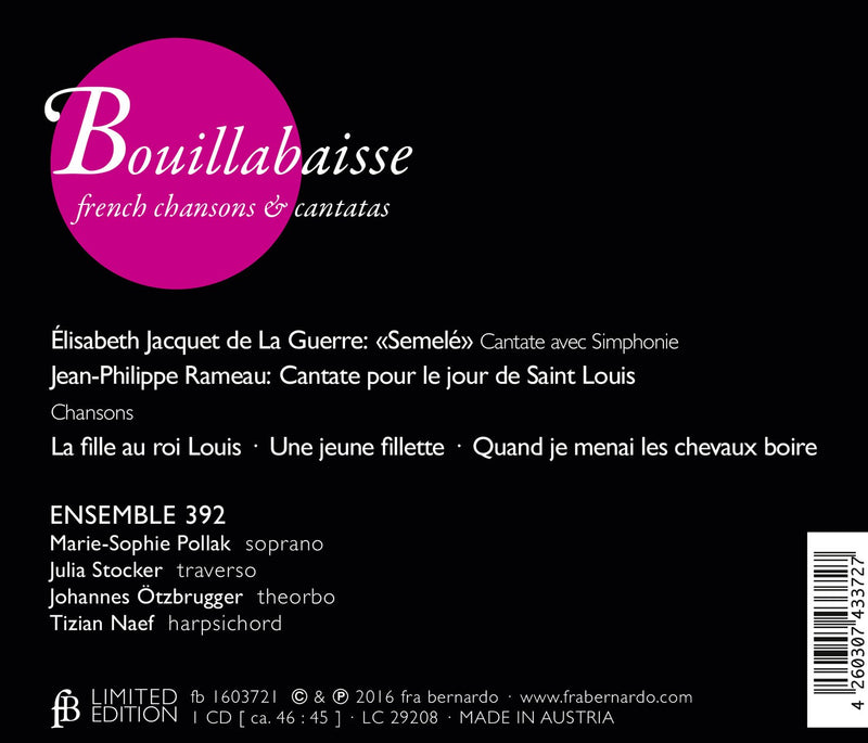 Fra BernardoBouillabaisse: French Cantatas & Chansons / Ensemble 392