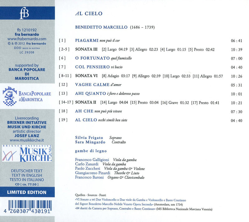 Fra BernardoAl Cielo: Duetti Da Camera Di Benedetto Marcello