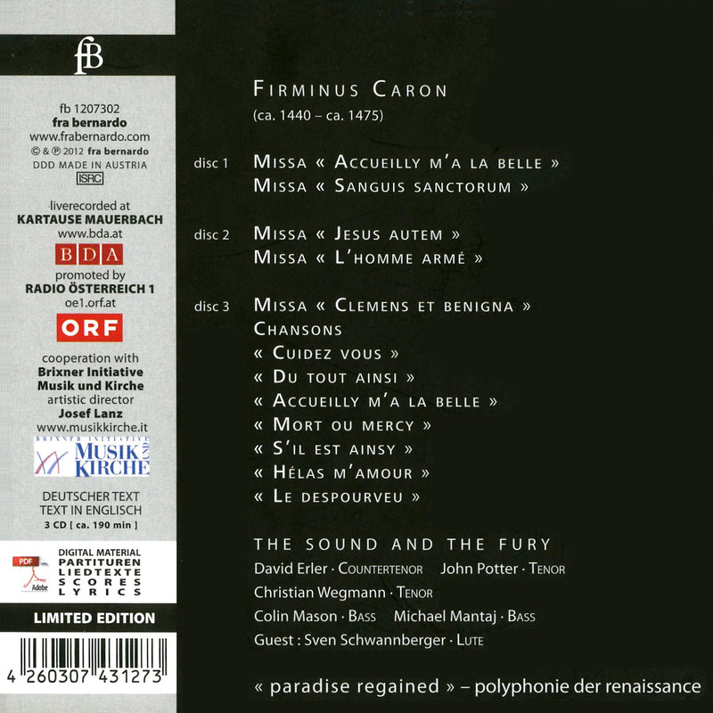 CARON Masses and Chansons • The Sound and the Fury • FRA BERNARDO 1207302 (3 CDs: 190:22) Next to nothing is known...