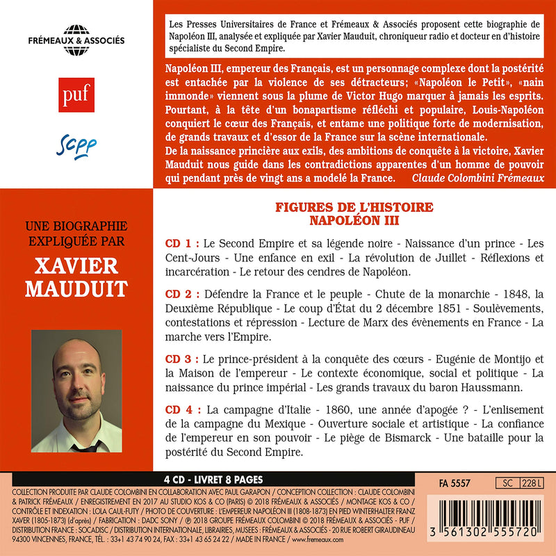 Presses Universitaires de France and Fremeaux & Associates offer this biography of Napoleon III, analyzed and explained by Xavier Mauduit, radio columnist,...