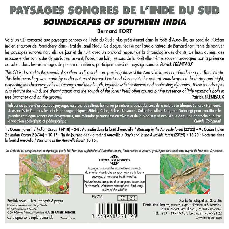 This album is devoted to the sounds of southern India, and more precisely those of the Auroville forest near Pondicherry in Tamil...