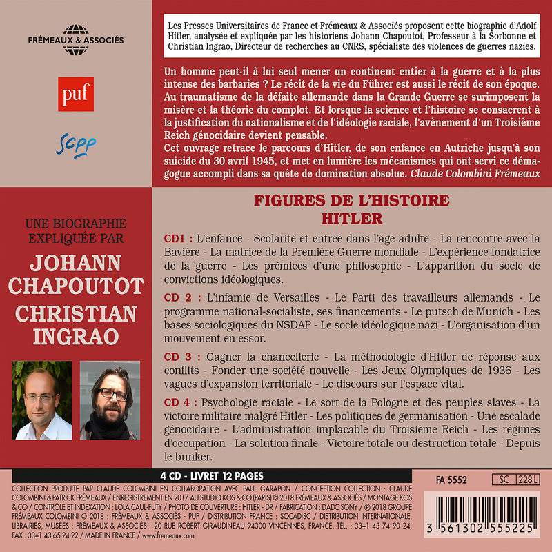 Presses Universitaires de France and Fremeaux & Associes offer this biography of Adolf Hitler, analyzed and explained by historians Johann Chapoutot, Professor...