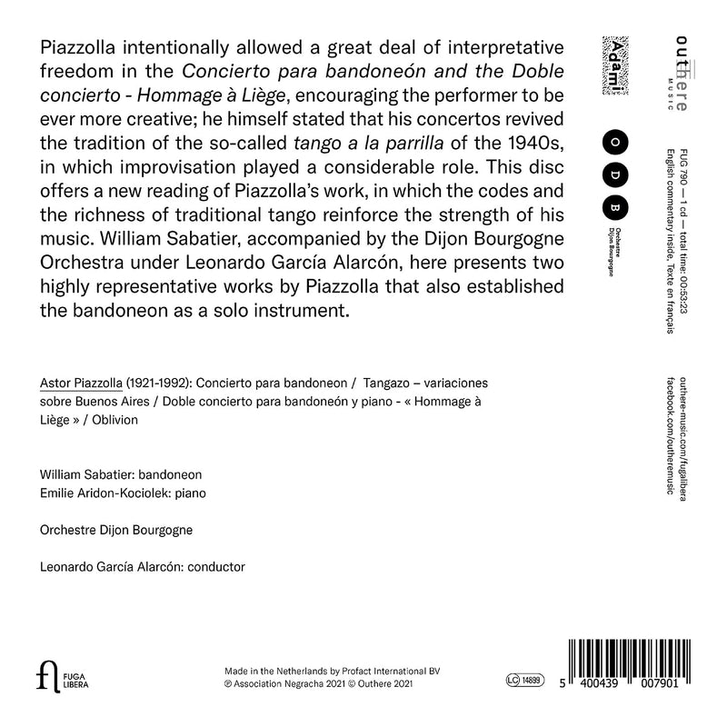 Fuga LiberaPiazzolla: Concertos / Sabatier, Alarcón, Dijon Bourgogne Orchestra