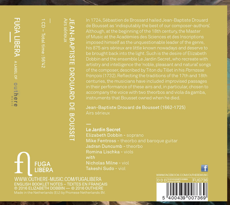 Fuga LiberaBousset: Airs sérieuxReflecting the traditions of the 17th and 18th centuries, the musicians, Le Jardin Secret and Elizabeth dobbin, have included improvised passages in...