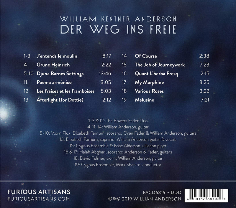 Furious ArtisansAnderson: Der Weg Ins FreieGuitarist/composer William Kentner Anderson, "the alert guitarist" (Paul Griffiths, NY Times), has been a champion of new American music for 35 years....