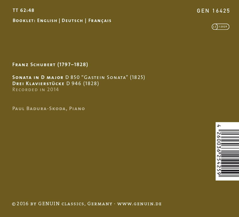 On SaleGenuinSchubert: Piano Sonata in D Major, D. 850 & 3 Klavierstücke,