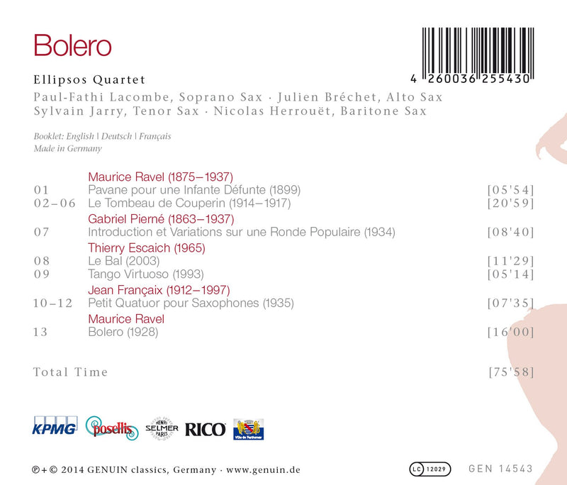 • A recital of French works for or arranged for saxophone quartet. • The Ellipsos Quartet's debut CD. • The Ellipsos Quartet...