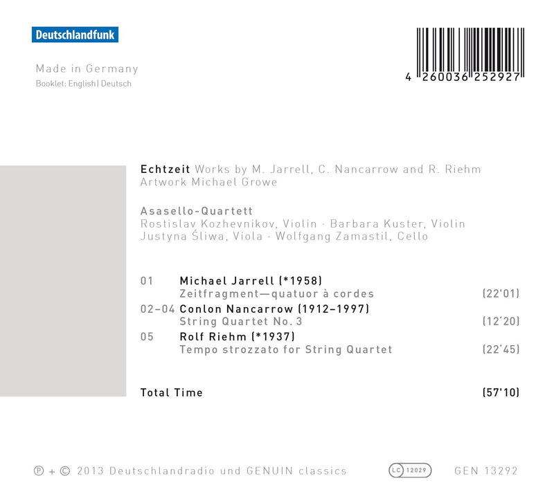 This is Asasello Quartet's second Genuin CD featuring works by Michael Jarrell, Conclon Nancarrow and Rolf Riehm.