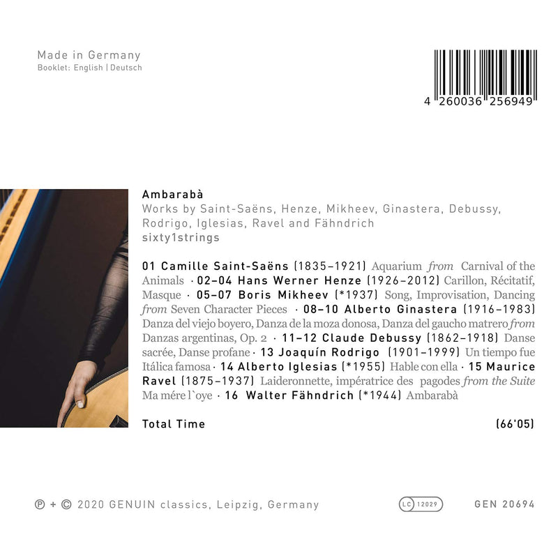GenuinAmbaraba / sixty1stringsThe trio sixty1strings is indeed a unique ensemble! On their GENUIN album Ambarabà, the three young musicians Ekaterina Solovey (mandolin), Negin Habibi,...