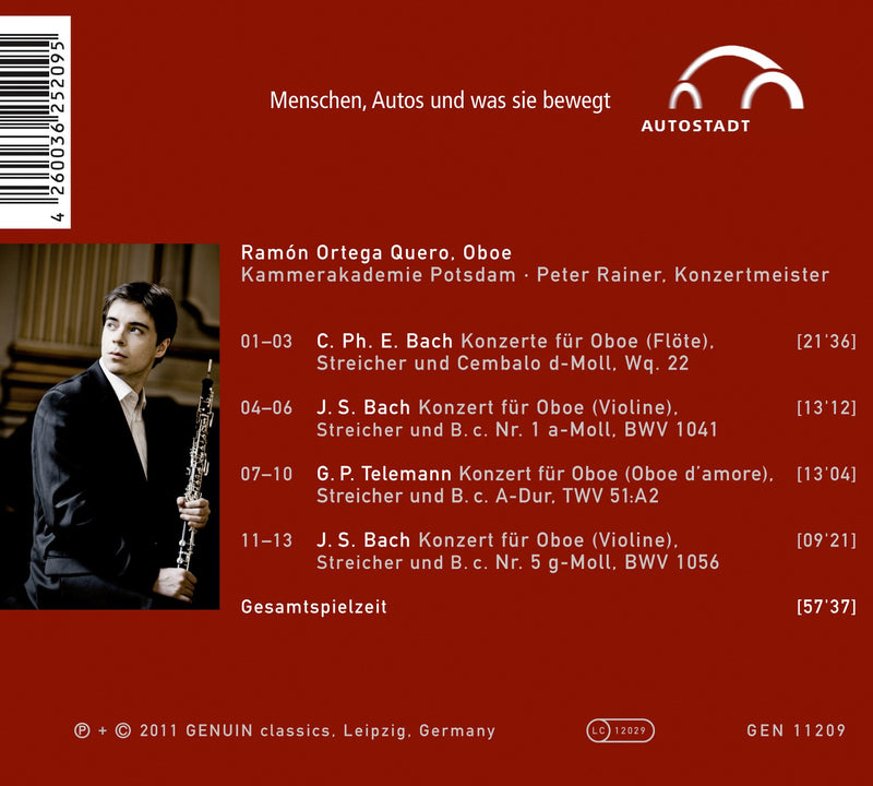 GenuinBach, Telemann, C.P.E. Bach: Oboe Concertos / Ortega Quero, Rainer
