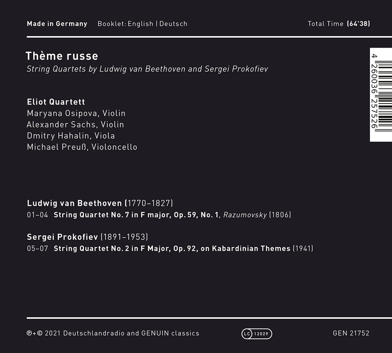 GenuinTheme Russe - String Quartets by Ludwig van Beethoven and Sergei Prokofiev / Eliot Quartett