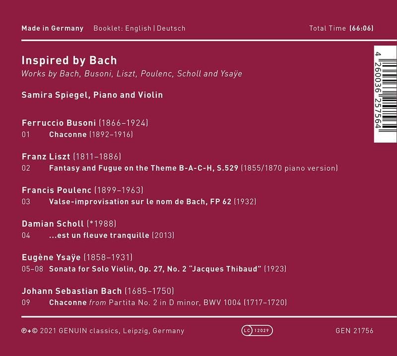 GenuinInspired by Bach - Works by Bach, Busoni, Liszt, Poulenc, Scholl & Ysaÿe / Spiegel