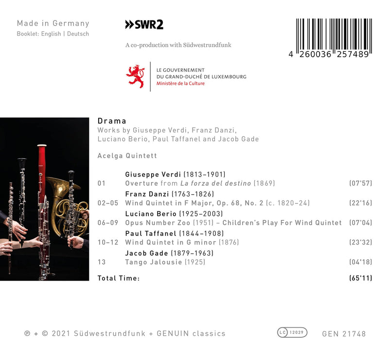 GenuinDrama - Works by Giuseppe Verdi, Franz Danzi, Luciano Berio, Paul Taffanel and Jacob Gade / Acelga Quintett