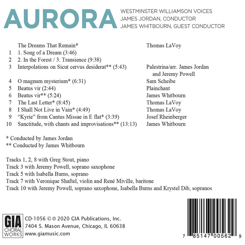 James Jordan writes: "I suppose as artists we are always searching for metaphors that speak directly to the musics we perform to guide us and inspire. The music on this release pushes our boundaries of what could be considered "normal" music making and instead moves us into sound worlds that expand what a choral ensemble can produce. This recording, which documents an almost three-year exploration into improvisation in various forms, contains works for choral ensembles that create new sound worlds in and of themselves. All of the works on this album create Auroras of their own that touch us deeply and cover our senses with streams of light. Hopefully the sounds on this release will, as Makoto Fujimura says, "bring you outside of yourself, and pull you to look at the [life's] horizon and to see beyond."